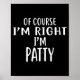 Poster Of Course I'm Right, I'm Patty Novelty Humor