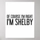Poster Of Course I'm Right I'm Shelby Name Funny Christma