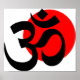 O símbolo Ohm com um sol vermelho atrás dele.