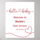 Poster Olá Bebê Red Heart Mínimo Chá de fraldas Bem-vindo