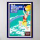 Poster vintage de Boston e Maine Rail para a Old Orchard Beach com uma rapariga retrô no mar com uma bola.