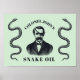 Este impressão de estilo vintage apresenta um homem vestindo um telhado ocular e dois cobras. Diz: "Óleo de Cobra do Coronel John".