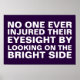 Motivações tipografia poster design com texto "Ninguém jamais machucou a vista olhando pelo lado positivo". O texto é de cor branca sobre a cor violeta escura. Você pode alterar a cor do plano de fundo se quiser, clicando no botão 'personalizá-la'.
