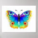 Arco-íris, realista, desenhado artisticamente, borboleta pavão de cores brilhantes com asas detalhadas texturizadas sobre fundo branco. Borboleta-arco-íris.