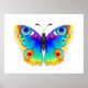 Arco-íris, realista, desenhado artisticamente, borboleta pavão de cores brilhantes com asas detalhadas texturizadas sobre fundo branco. Borboleta-arco-íris.