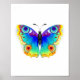 Arco-íris, realista, desenhado artisticamente, borboleta pavão de cores brilhantes com asas detalhadas texturizadas sobre fundo branco. Borboleta-arco-íris.