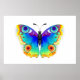 Arco-íris, realista, desenhado artisticamente, borboleta pavão de cores brilhantes com asas detalhadas texturizadas sobre fundo branco. Borboleta-arco-íris.