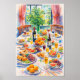 Perfect for kitchen wall art, dining room decor, restaurant decor, wine lover gifts, housewarming presents, and summer home styling. The rich colors and painterly texture make this artwork ideal for canvas prints, posters, invitations, kitchen accessories, and home decor products. A stunning choice for anyone who loves food art, still life paintings, Mediterranean decor, or vibrant entertaining scenes.