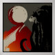 Sombra de um gato (papo ombre d'un) contra fundo abstrato de cores vermelha, preta e bege. Arte original da artista Margaret Loftin Whiting.