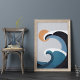 Este abstrato oceano ondas e poster de sol são ideais como um presente para a praia de boho e amantes de surfs.