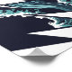 Um design gráfico ousado que apresenta ondas oceânicas poderosas em tons de lacre, turquesa e azul profundo, contrastado por pinos brancos agudos que cortam um fundo marinho escuro. A composição dinâmica combina o movimento fluido de ondas de choque com a intensidade irrefletida de raios, criando um visual dramático e energético que capta a força bruta da natureza.