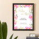 Poster floral personalizado para o seu casamento ou jogo de chá de panela, decorado com botões de flores cor-de-rosa e dourados e flores e caligrafia elegante. Ideal para enquadrar as fotos ou simplesmente colocar na estação de cartões de jogo. O modelo está preparado para personalizar o texto com os nomes da noiva e do noivo.
