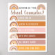 Onde está o Sinal de Porta do Conselheiro da Escola em boho arco-íris design. Avise aos estudantes onde você está com esta placa de porta do escritório. Segure-o na porta do escritório e feche um pino para indicar o seu lugar.