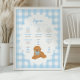 Celebrate your little one’s big milestones with this adorable “My Golden Year” first birthday poster! Featuring a soft blue gingham background, scalloped white frame, and a sweet golden doodle puppy with a blue bow, this boy’s birthday milestone sign is the perfect way to capture all of your child’s favorite things, from favorite foods to first words.