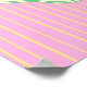 A charming pastel birthday design featuring a sleepy pink cat in a tiny party hat, framed inside a soft cream label with mint green bow details. The pink-and-yellow striped background adds a cheerful retro touch.