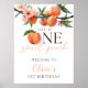 Poster One Sweet Peach 1st Birthday Welcome Sign