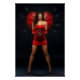 Beneath the map of scars, in the shadows, where vulnerability meets defiance, she wears the wreckage of past affections like a crimson veil, guarding the fragile engine beating in her hands.