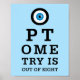 Clever Snellen eye design diz: Optometria Está Fora De Vista. Essa poster faz uma ideia de presente de excelente para o oftalmologista, oftalmologista ou optometrista. Decor perfeito para o escritório de optometria.