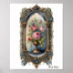 Esta requintada pintura aquosa mostra um buquê vibrante de rosas, lilases, e outros sangramentos delicados organizados em uma urna clássica. As flores são enquadradas por um ornamentado, moldado, enfeitado com detalhes intrincados e pedras de gema que brilham. A composição geral expele um sentido de elegância, luxo e beleza eterno.