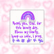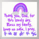 Monograma para que você insira sua própria oração, se você assim o desejar, poster quadrado. Este tema fofo com um arco-íris roxo e rosa com nuvens, e texto roxo sobre fundo branco, diz, Obrigado, Deus, por este maravilhoso dia. Abençoe a minha família, mantenha-nos seguros, rezo.