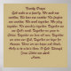 Oração Familiar - Deus nos fez uma família, Precisamos um do outro, Adoramos um ao outro Nós nos perdoamos, trabalhamos juntos, brincamos juntos, cultos juntos, Juntos usamos a palavra de Deus, Juntos crescemos em Cristo, Juntos amamos todos os homens, Juntos servimos nosso Deus, Juntos esperamos pelo céu, Estas são nossas esperanças e ideais, Ajudem-nos a alcançá-los, Deus, Através de Jesus Cristo nosso Senhor Amém...