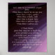 Este poster cristão tem a inspiradora oração católica da Rua Francisco contra um belo fundo em tons de roxo: Senhor, faça de mim um instrumento da sua paz. Onde há ódio, deixe-me mostrar amor. Onde há lesão, perdão. Onde há dúvida, fé. Onde há desespero, esperança. Onde há escuridão, luz. Onde há tristeza, alegria. O Mestre Divino, conceda que eu posso não tentar ser consolado, mas consolar, ser entendido, entender, ser amado, amar, amar. Porque é ao dar que recebemos. É perdoando que somos perdoados, e é ao morrer que somos nascer da vida eterna.