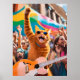 Um gato laranja está se amontoando com a multidão em um concerto de rock.