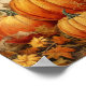 Um poster com uma ilustração rústica com abóboras laranja e folhas de queda. Uma vibração do outono.