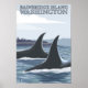 Orca Whales nº 1 - Ilha de Bainbridge, Washington - Poster de Viagens vintage foi criada em 2007. Esta imagem mostra cenas de Bainbridge Island, WA.