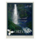 Uma pintura digital de uma queda d'água encontrada ao longo da trilha de alternância de Multnomah Falls na Zona Cênnica da Garganta do Rio Columbia, em Oregon. O número branco no canto superior é o ano em que Oregon se tornou um estado. A inscrição branca no centro da pintura, "Ela voa com suas próprias asas", é o lema do estado. Na parte inferior da pintura está uma flor de trilium branca ao lado de Oregon, em letras brancas. Uma simples borda azul escura termina a pintura. Imagem Copyright ©2023 Kimberly J Tilley.
