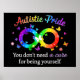 Símbolo infinito colorido do Orgulho Autista e a mensagem de "Você não precisa de uma cura para ser você mesmo" com belas borboletas, corações e flores. É um presente excelente para celebrar o Dia do Orgulho Autista no dia 18 de junho a cada ano.