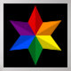 Seis pontas em cores de LGBT (lésbicas, gay, bissexuais e pessoas transexuais), a bandeira do arco-íris libra.