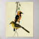 Pintura de uma Oriole Hooded. Belas aves laranja e amarelas perecem diariamente num galho. com fundo creme. Essa ilustração foi feita na Era Vitoriana, 1862, pelo artista e ornitólogo norte-americano John Cassin.