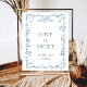 Poster Ornamentado Vitoriano Dusty Blue Floral Love é doc