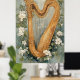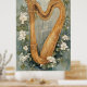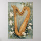 An ornamental harp surrounded by white flowers. Here are some details about this instrument: