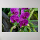 Um ramo da orquídea da falaenopse púrpura floresce num ambiente natural, brilhando com água da chuva.