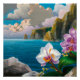 Orquídeas tropicais, oceanos, penhascos e poster de nuvens. Imagem impressionante para qualquer sala na casa.