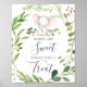 Dê aos seus hóspedes uma direção encantadora com nossos bebês elefantes que são doces, por favor, pegue um sinal de doce, com cor d'água verde eucalipto garland e uma elegante letra de estilo manuscrito.