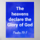 Um poster inspirador, este design diz: "Os céus declaram a glória de Deus" "Salmo 19:1" em grande texto branco. Há uma foto de um céu azul no fundo. Peça o seu hoje! Foto: Rhonda Jones