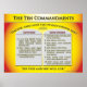 A versão católica dos Dez Mandamentos com a clássica divisão Augustiniana dos três primeiros e dos sete últimos. Estas duas divisões também são rotuladas com os dois Mandamentos do Excelente: Deus do Amor e o Amor Outros Inclui as referências da Escritura tanto para as duas listas do Antigo Testamento quanto para a lista que Jesus recita ao jovem rico. O vermelho e o amarelo evocam o fogo que rodopiou o Monte Sinai enquanto Moisés recebeu o Decalogue.