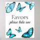 Os favores tomam um. Trendy Chic poster com borboletas Blue Watercolor. Escolha elegante para casamentos de verão. Parte de uma coleção de casamento.