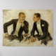 Um belo trabalho de J. C. Leyendecker de dois cavalheiros vestidos em tuxedos sentados em profunda conversa.