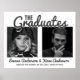 Dobrados graduados, celebrações duplas de festa! Estes cartazes modernos de boas-vindas de graduação apresentam 2 graduados e suas fotos com um modelo de anúncio elegante. Todos os estilos de fonte e cores de fundo podem ser alterados clicando no link personalizar ainda mais após a personalização.