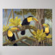 Três tucanos sobre uma árvore na floresta tropical. De uma pintura original de Laura Regan