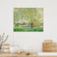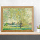 Esta bela pintura de Claude Monet apresenta uma cena pintada vagamente com uma paleta colorida é quase completamente dominada por tons legal de primavera, sábio, aipo e verde-kelly, e aço e azul-marinho. As daubs amarelas ouros na parte inferior direita sugerem floração, e as folhas das árvores são criadas com derrames finos e ascendentes e dabs ao longo de ramos menores. As árvores chegam alto em um céu cheio de varreduras de bege, cor-de-rosa pincelado e primavera verde-camada sobre azul pálido. O rio é uma cinza lavanda, e os edifícios baixos, fortemente aglomerados são pintados com uma mistura de ocre, pêssego e azul de denim. Minhas imagens de arte são obtidas em galerias públicas e otimizadas em alta resolução para oferecer um impressão de qualidade.