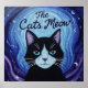 Este poster de chicote apresenta um gato de smoking cercado por um céu noturno roxo azul sereno, com a mensagem The Cats Meow logo acima dele. Terminado em um impressão de tinta a óleo.