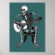 Sentado guitarrista esqueleto. B/W, desenho de caneta e tinta em t-shirts, suores, cartas, artigos de presente.