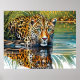 Jaguar cheio colorido na selva (projetado por mim com um gerador de IA) com imagem espelhada na água ondulante. Este é um poster sem armação que você pode levar para seu quadro ou compro de hobby favorito para combinar com o quadro perfeito para seu design interior. Estão disponíveis diferentes opções de poster. Ama a imagem, mas quer-a num produto diferente? Sem problemas, você também pode comprar isso como um download instantâneo. Você não pode usar esta imagem como sua para vender como um download digital ou em qualquer concurso, os direitos de imagem são retidos por mim. A cor da imagem pode variar em diferentes telas de visualização.