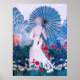 Our lady strolls through her beautiful garden. Untroubled by the elements, she carries a parasol that protects against sunlight. Her thoughts connect the return of spring with winters deep-rooted passing, life after life, and eternal pleasure.