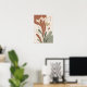 Tonalidades de terracota, bege e verde-oliva quentes se juntam nesta composição floral abstrato. As linhas fluentes e formas orgânicas criam um trabalho de arte botânico moderno que traz elegância e harmonia naturais a qualquer espaço vivo.